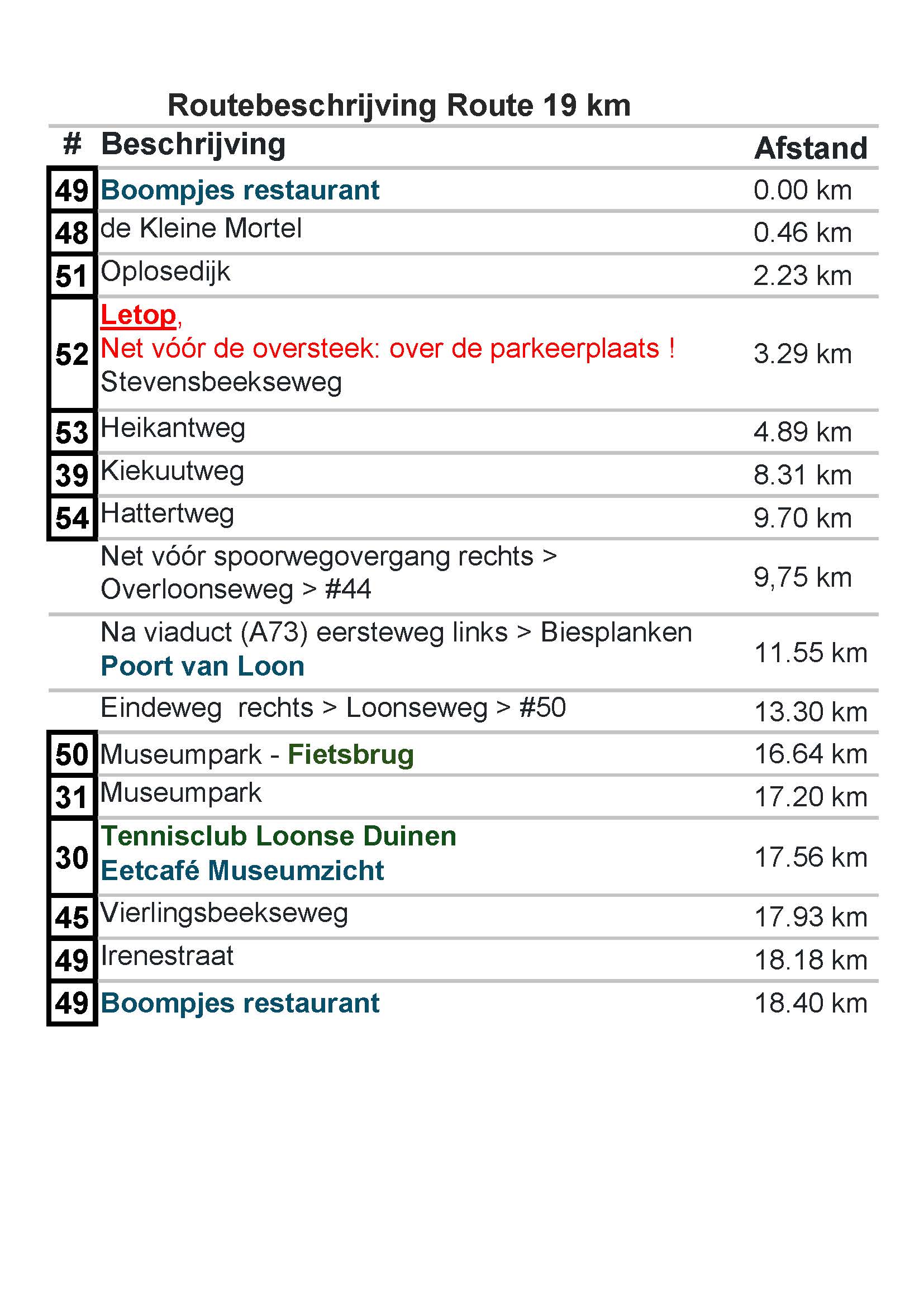 • Route 19 km
