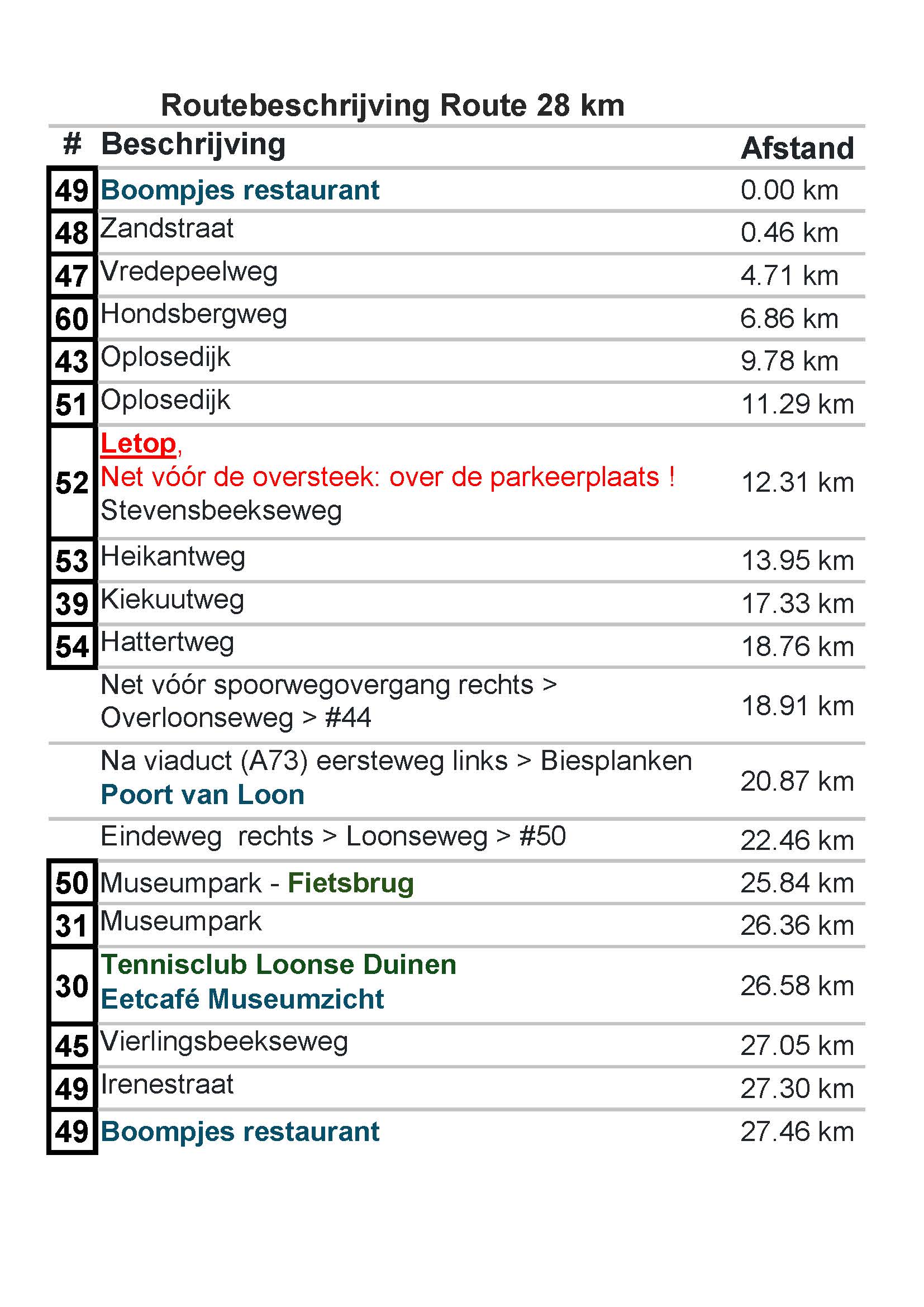 • Route 28 km
